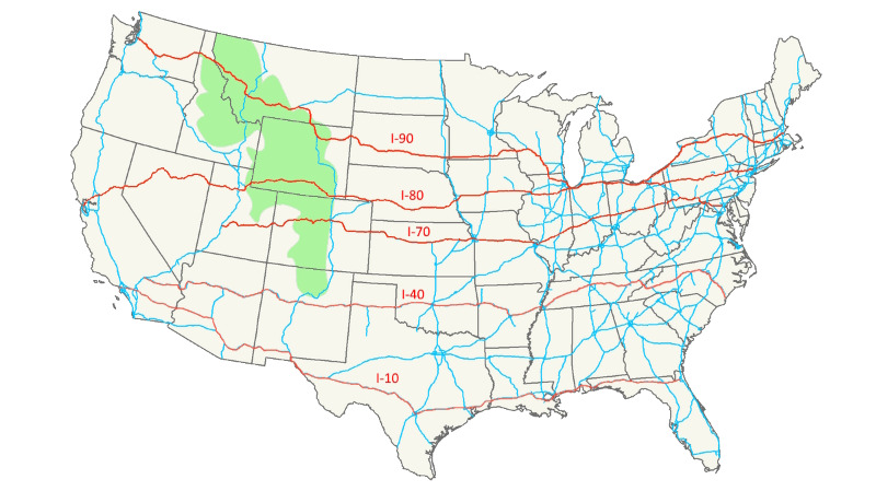 I've done I-40 and I-80 with no issues. Take the usual mountain/desert flying precautions.