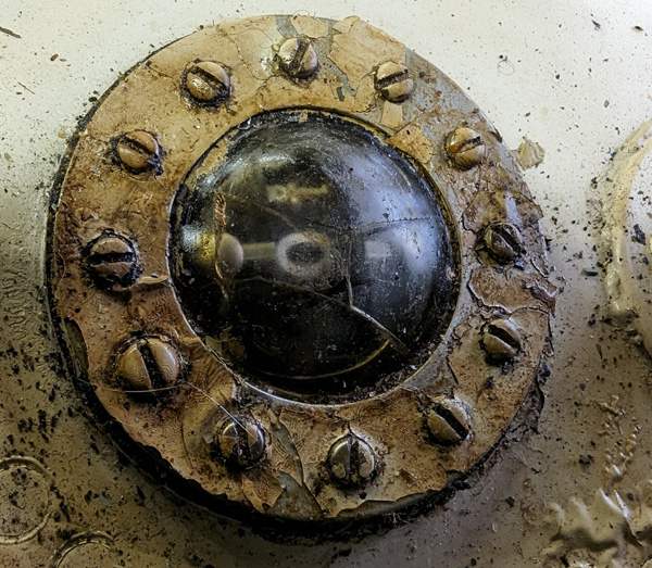 Here's what mine looked like BEFORE the new lens. I also stripped & repainted the top ring and screw heads and it looks great now.